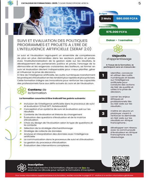Cette formation intègre ces innovations pour renforcer les capacités des professionnels face aux défi s actuels du suivi et de l’évaluation.